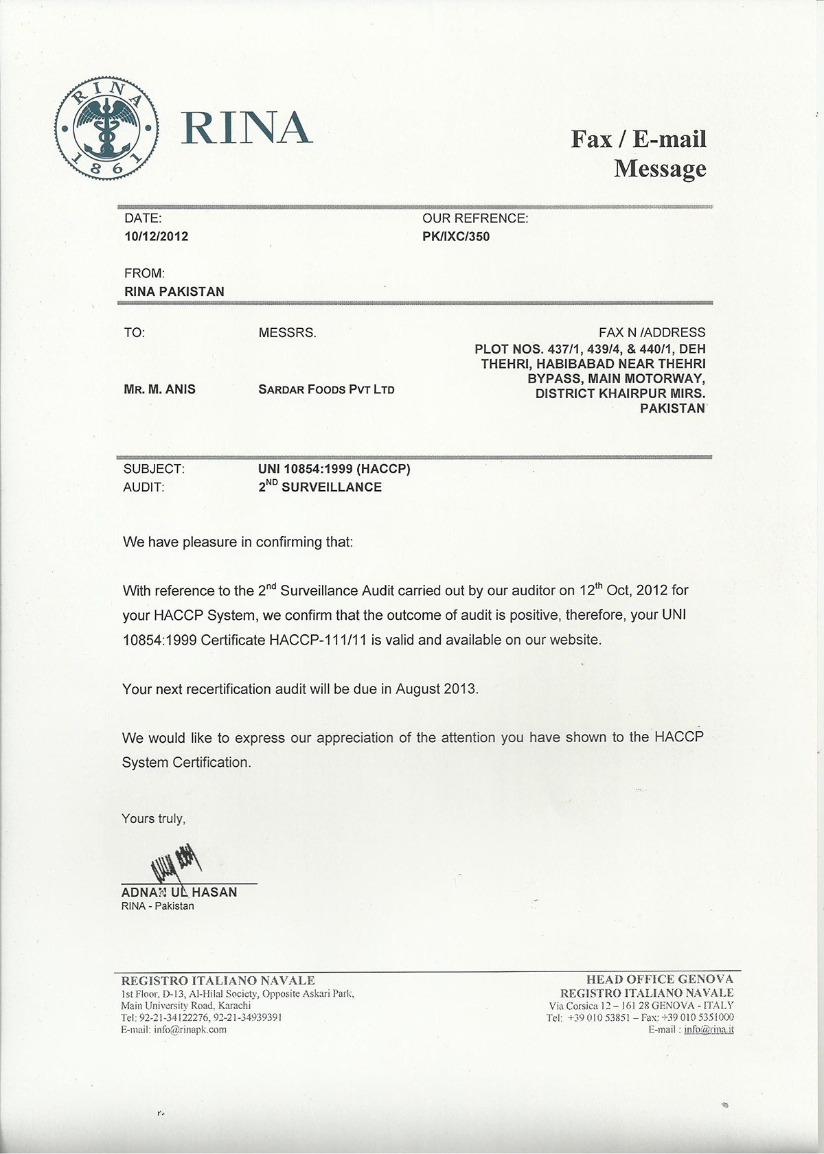By the Grace of Almighty, we have maintained the sales growth of 25% per annum since the formation of the company and last year our total exports of dates were in excess of our targeted value.